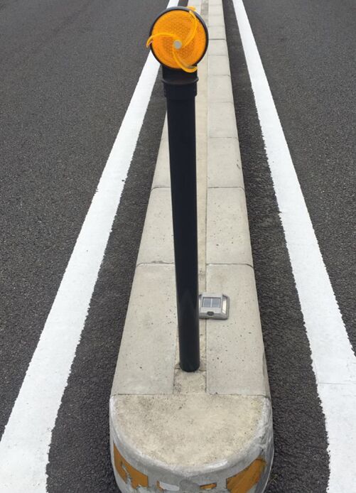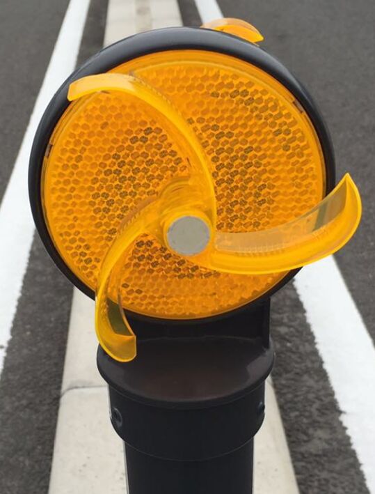 描述:隔離帶端頭警示柱,設置三角刮面風車結構,利用自然風或車輛快速通過時的空氣流動,帶動三角風車轉動,及時清除發(fā)光面灰塵。